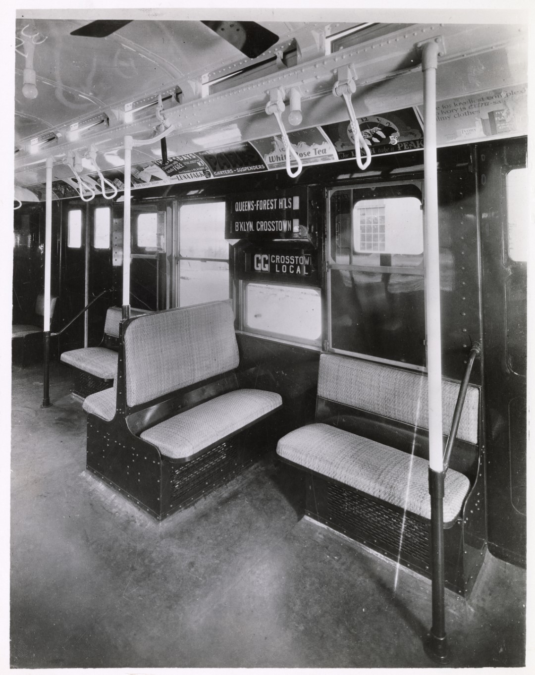 The Electric Railway Journal: “The arrangement of the seats is somewhat similar to the arrangement now in existence in the B.M.T. cars, but in the city’s new subway cars there is to be 2 in. more knee room between cross-seats than in the B.M.T. cars. Each car will seat 60 passengers, and when filled with a standing load, each car will have a capacity of 282 passengers. The station platforms are 660 ft. in length, enough to accommodate a train of eleven cars, nearly 30 per cent more than the longest B.M.T. train and 55 per cent more than the present Interborough trains of ten cars each.”
